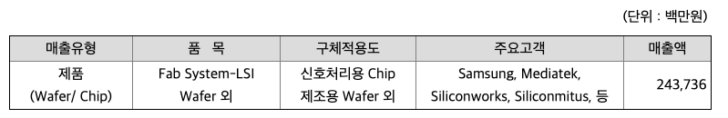 당사는 부천에 본사를 두고 있으며, 부천(FAB1)과 상우(FAB2) 두 곳에 공장을 두고 있습니다. 또한 해외 영업을 위해 미국법인과 대만, 일본, 중국 지사를 운영하고 있습니다. 당사의 주요 사업부문은 웨이퍼 수탁 생산 및 판매를 담당하는 Foundry 사업과 디스플레이 구동 IC 및 자사 제품을 설계, 판매하는 Brand 사업을 운영하고 있습니다.
