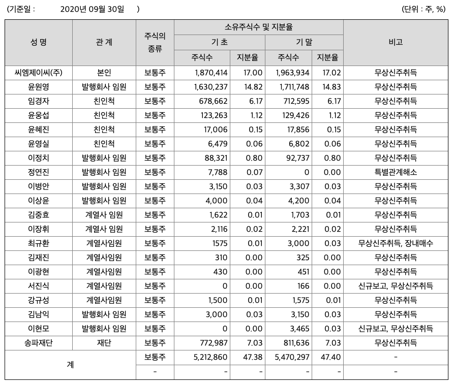 주주에 관한 사항