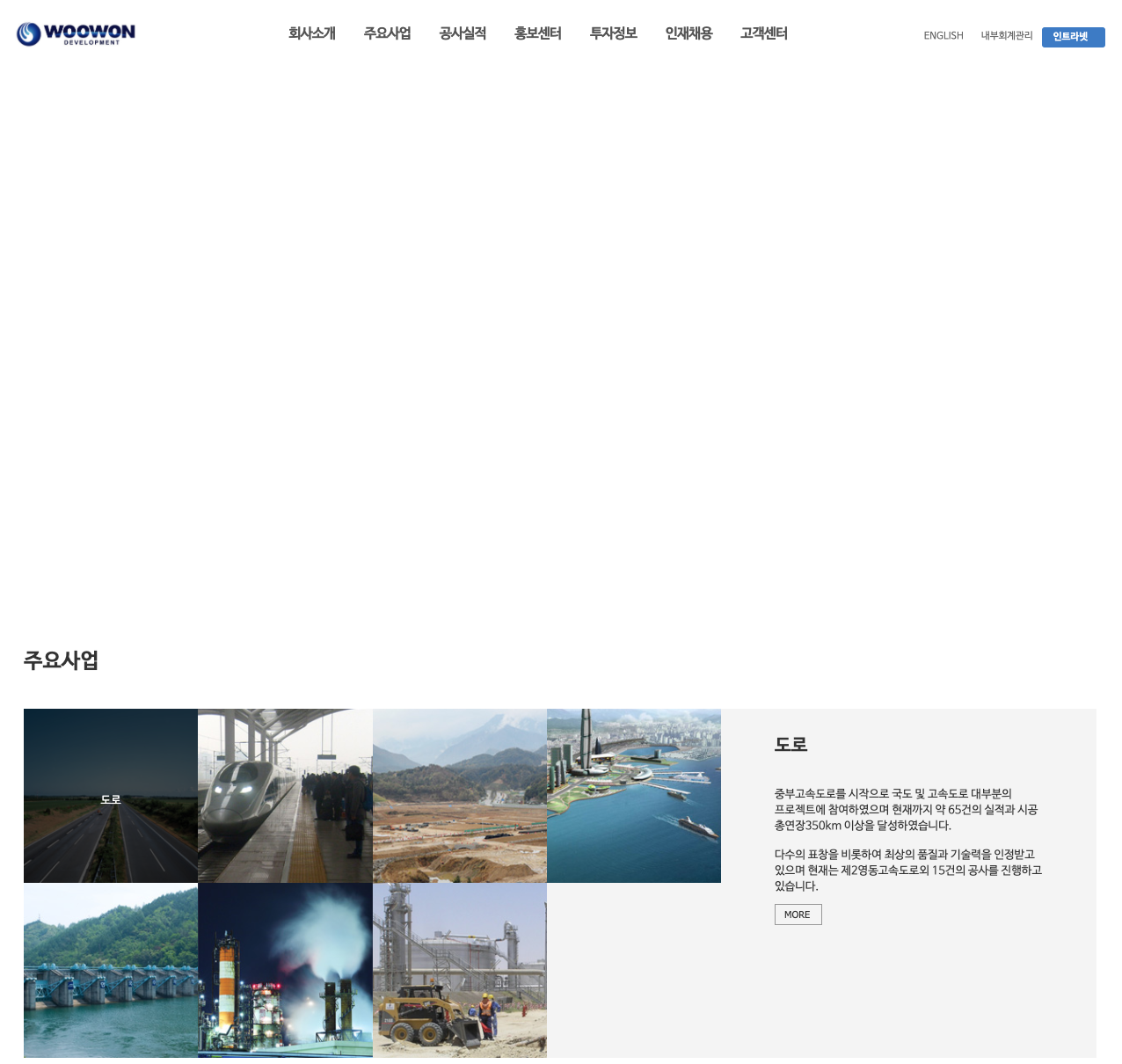 우원개발은 도로공사, 산업단지조성공사, 철도공사, 지하철공사, 특수공법공사, 하천공사, 항만공사와 주택건설 및 부동산개발 등이 있습니다.