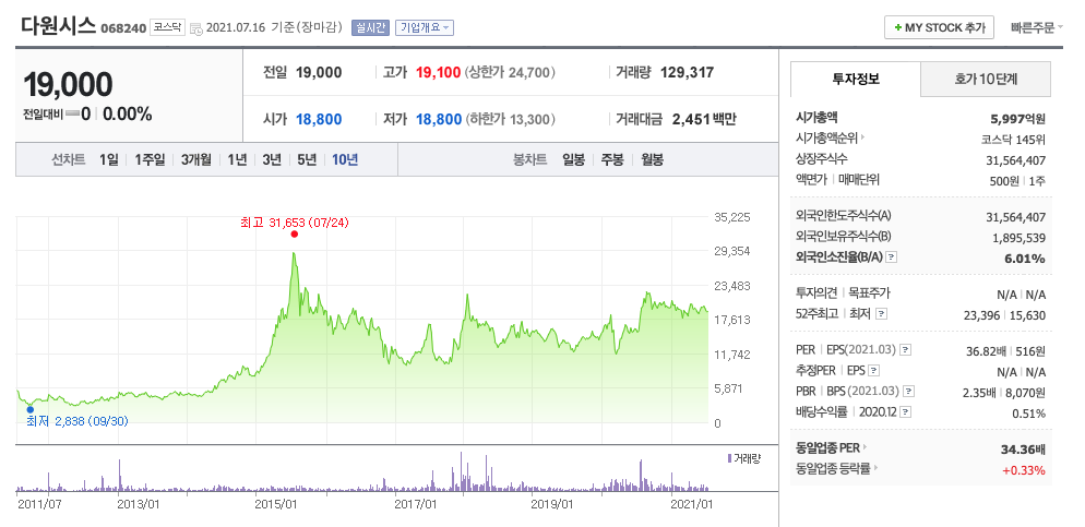 | 다원시스 | 19,000원 | 19,393원 | 19,344원 | 19,380원 |