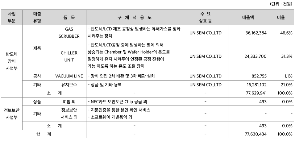 ***주요 제품 등의 현황
