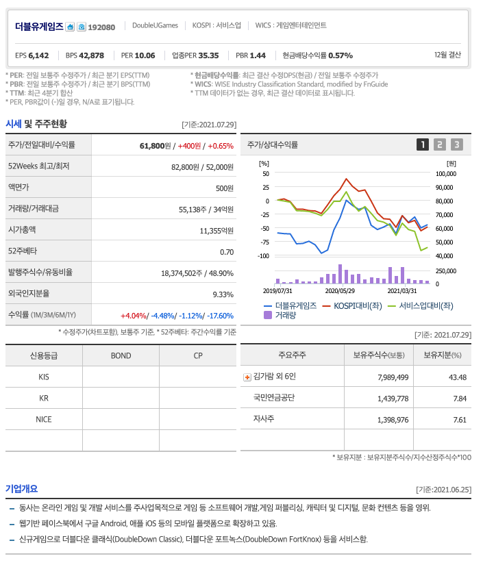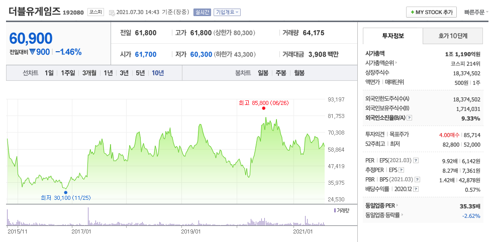 | 더블유게임즈 | 60,800원 | 63,229원 | 63,940원 | 63,554원 |