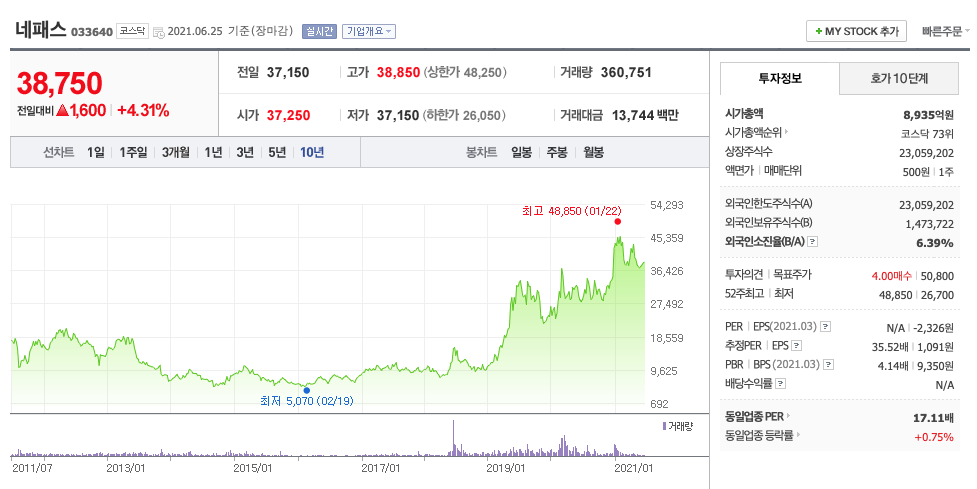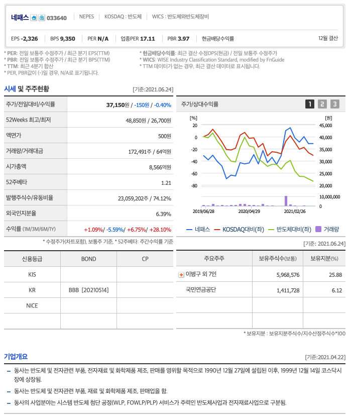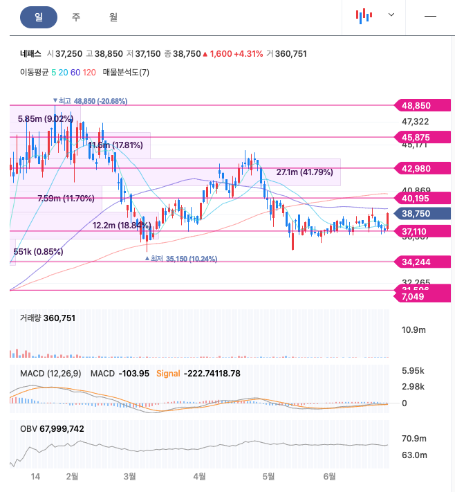 | 네패스 | 38,750원 | 40,013원 | 39,448원 | 39,639원 |