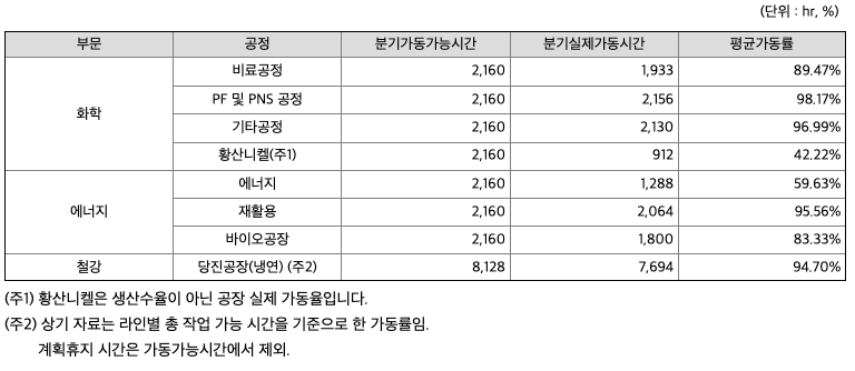 **당해 사업연도의 가동률