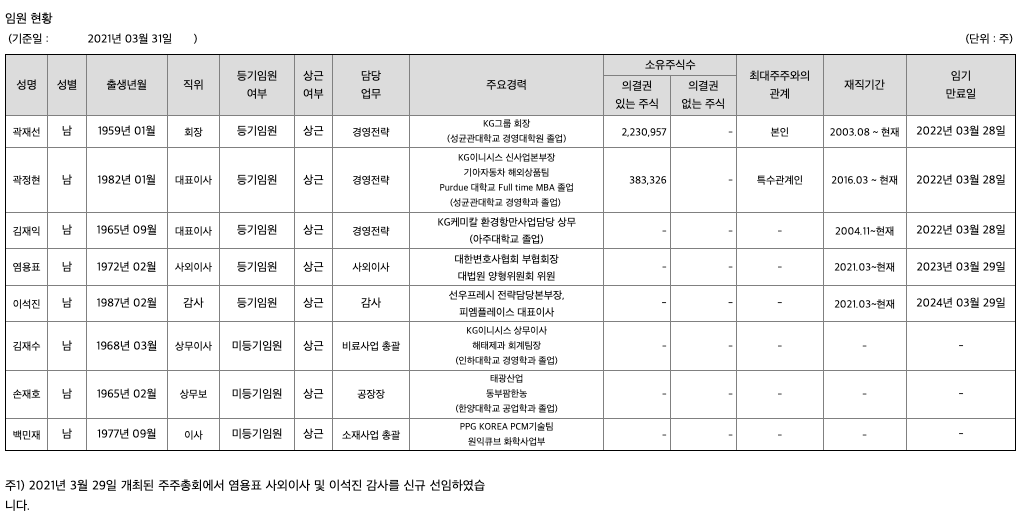 KG케미칼 목차 |